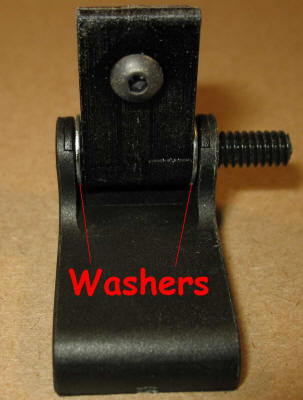 Slide in the threaded Nylon bolt on the side that has the washer recess area