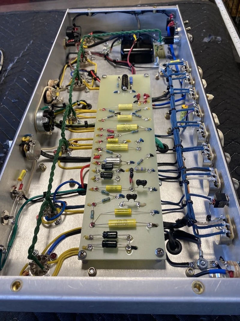 Just finished up a new amp I just started building, this one is #1.  I call it the "Rusty-Dawg" after my beloved mini aussie in the shop.  Shout out to Doug as always for the custom boards and also Slucky for keeping me in line on my schematic and his great suggestions.
