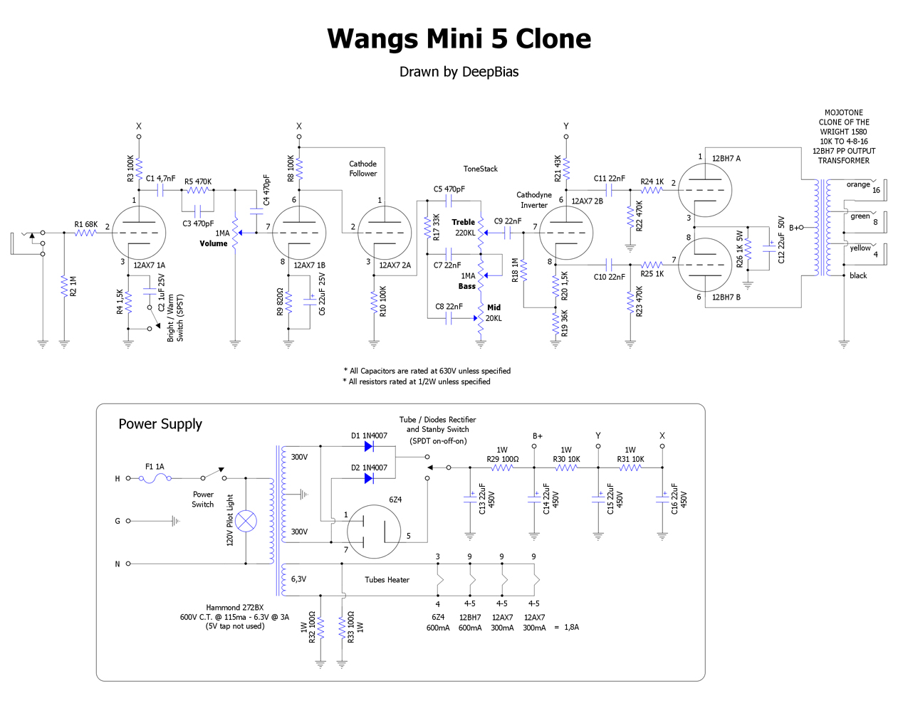About the TA on the schematic I post there is a 0-190V PT (that I've) but I think I'll change with one with other spec because I want to preserve the Y and X nodes at the level of the original project to preserve the tone of the amp (note that on the Clone schematic is indicated a 300v-0-300v PT but measuring B+ it was estimated it will be a 240V-0-240V AC one)