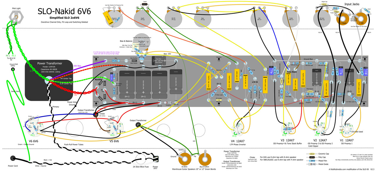 The Rob Robinette SLO Nakid circuit seems better suited for this than the original circuit, so I'm planning on starting with a turret board rather than a C3 SLO PCB. I'm torn between turrets and eyelets and open to suggestions—I see most people seem to favor turrets. I'll have a PCB available if that would be an easier starting point for some reason.