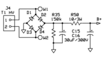 1. For a PT, I'm looking at the Hammond 261C6 (secondaries are 250VAC 45mA and 6.3V 1A, 1.625" wide). Would this be adequate for the 4 preamp tubes in this design (assuming V4 will be an output buffer stage)? A similar project I saw online using this transformer used the following full wave rectifier circuit which I believe outputs ~350VDC: