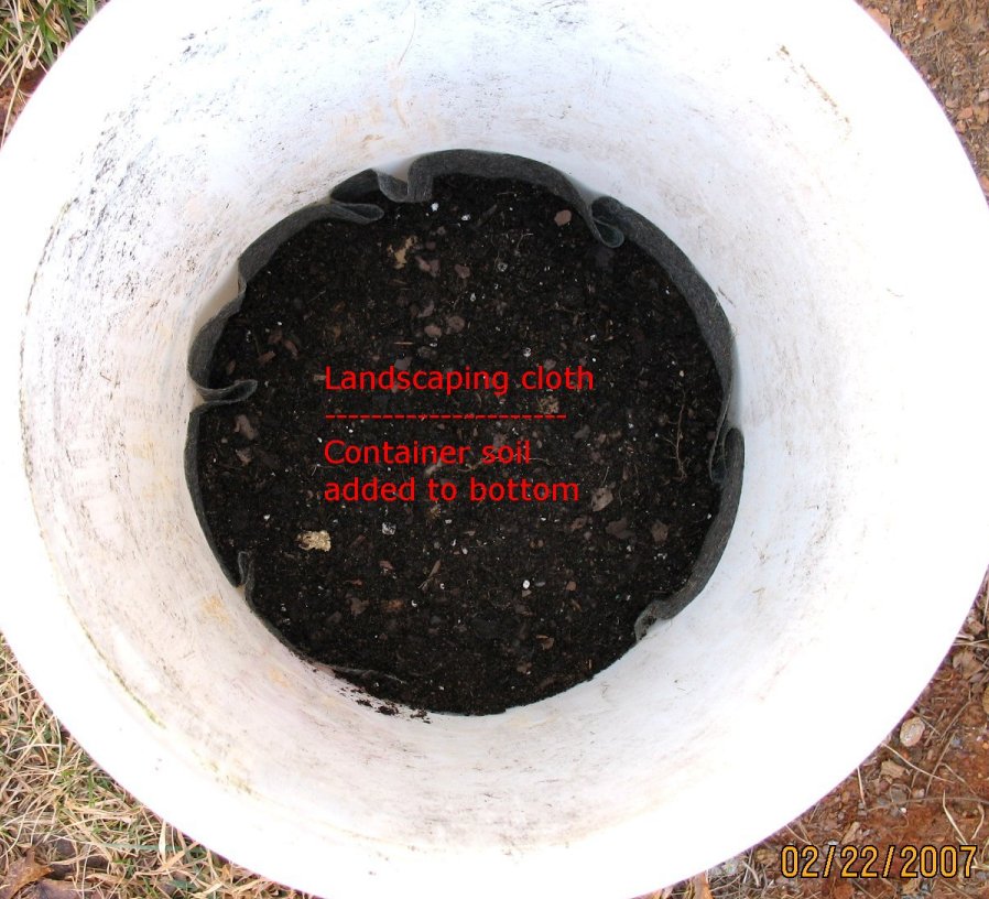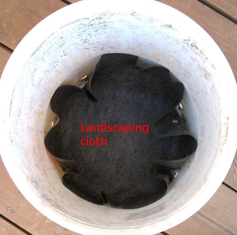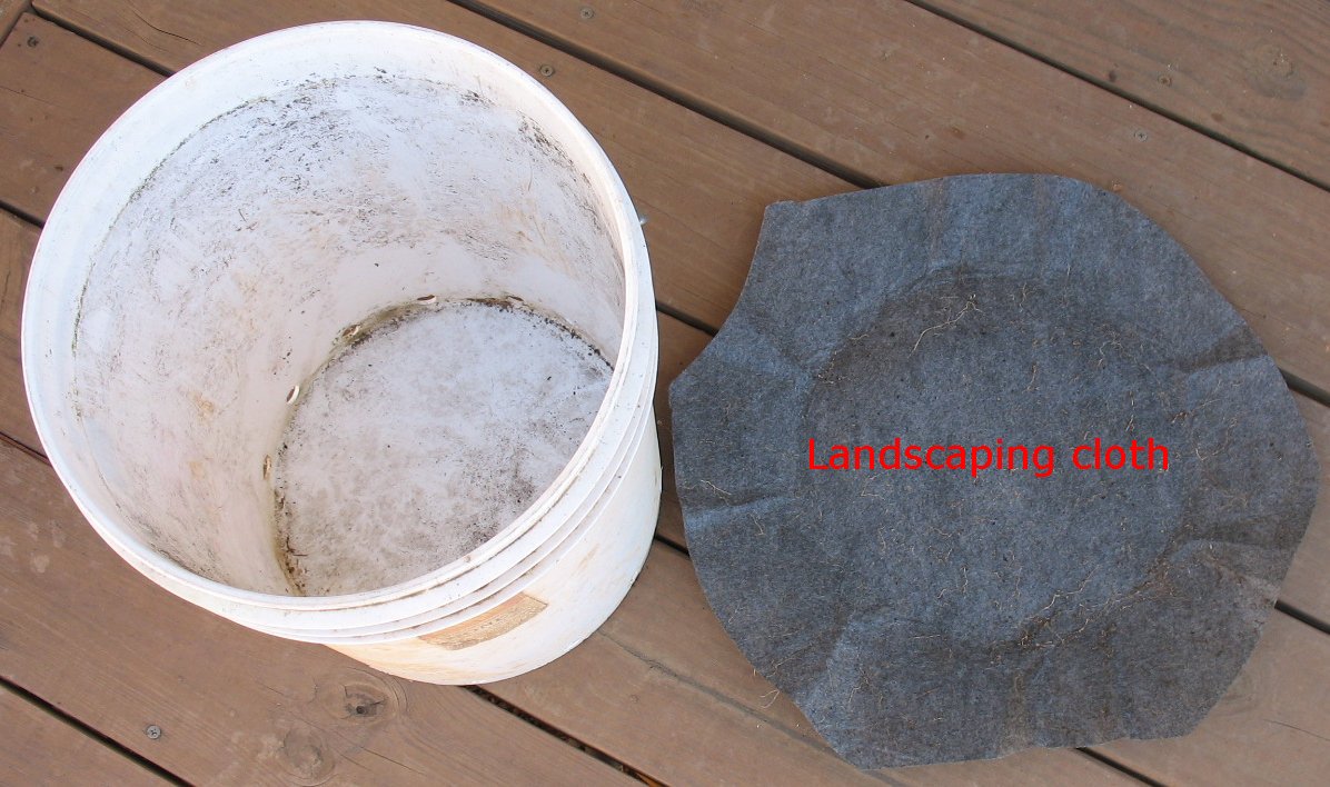 Bucket with landscape cloth inserted |