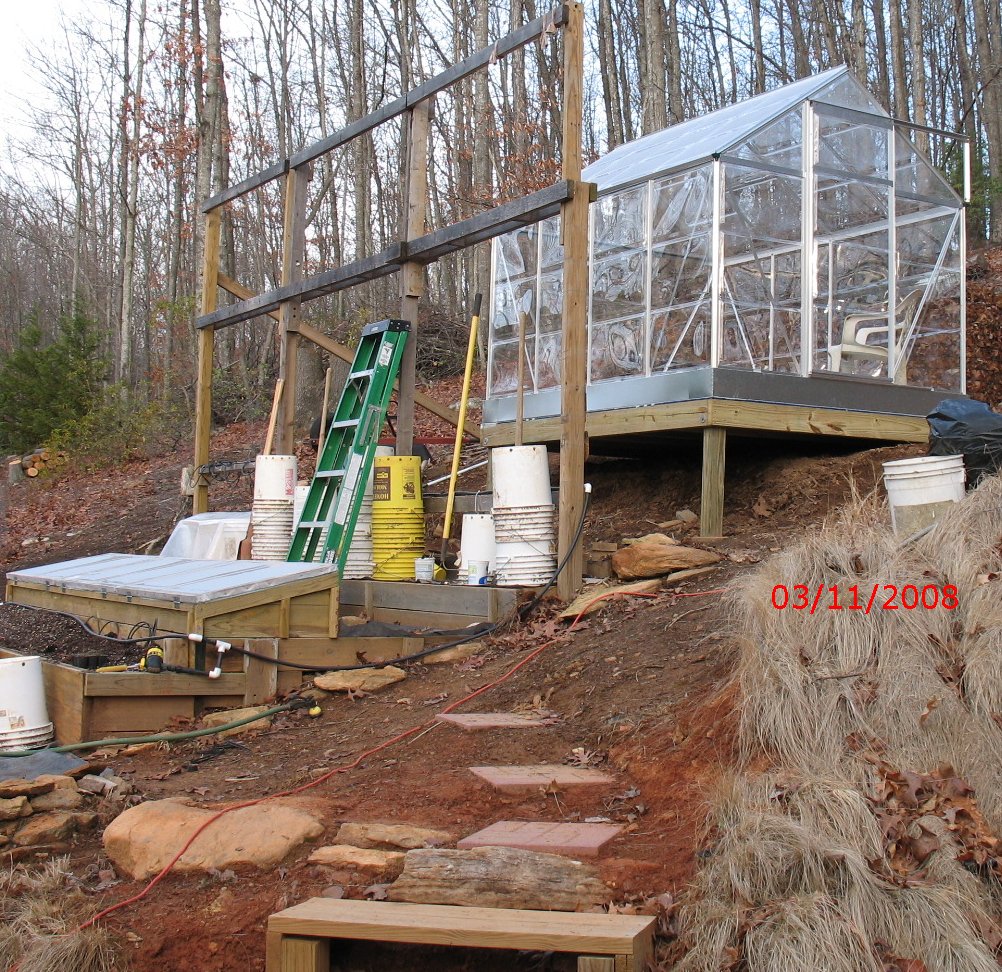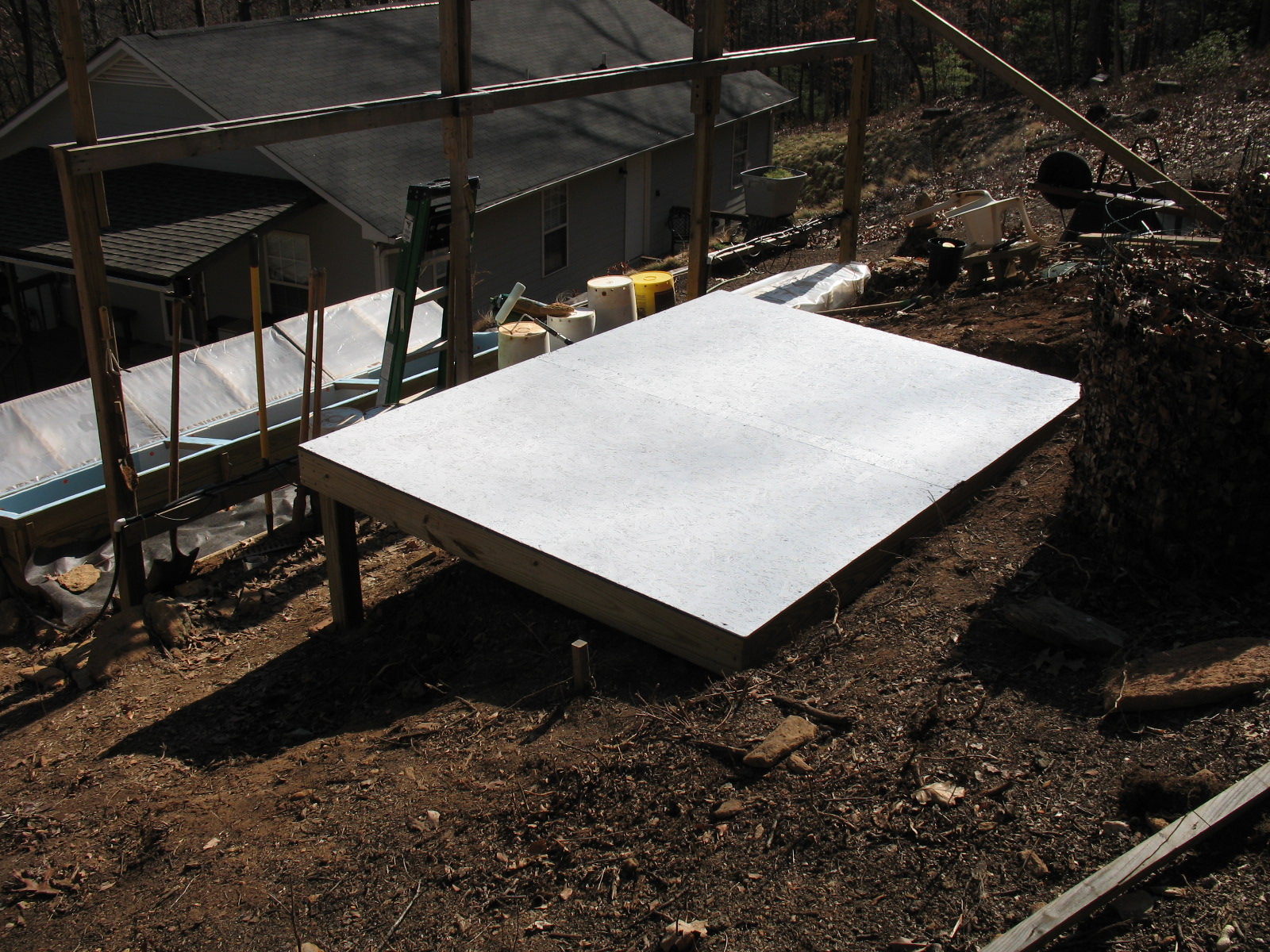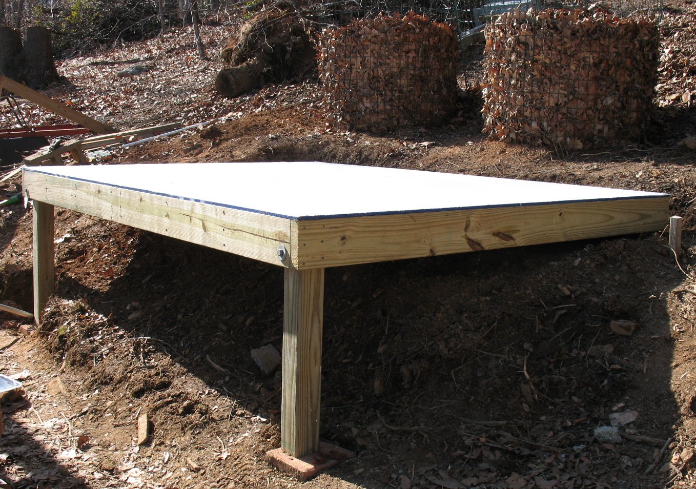 I built a 6' x 8' platform for the green house | |