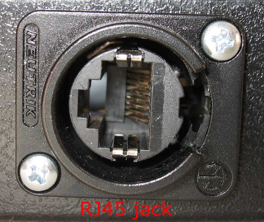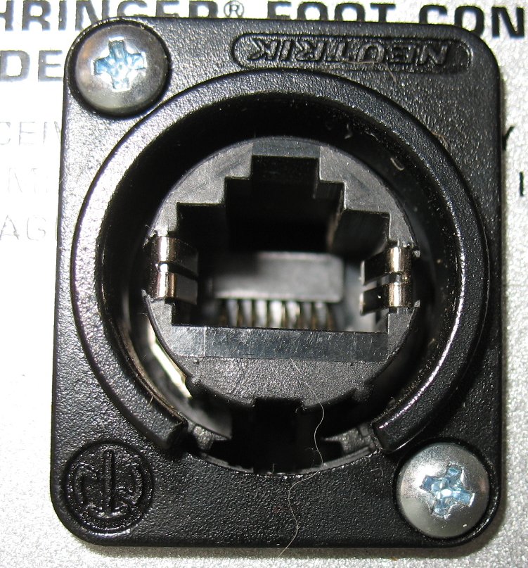 This image shows what the front side of the RJ45 Neutrik jacks look like I used a step drill bit to cut a round hole in the FCB1010 chassis and then mounted the RJ45 jack |
