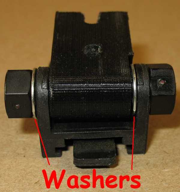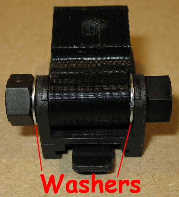 Slide in the threaded Nylon bolt on the side that has the washer recess area