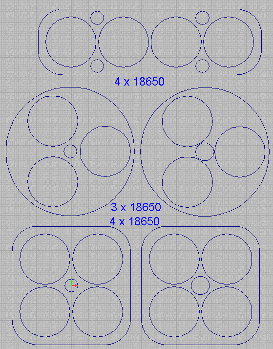 Some of the possible shapes that I can cut. 2, 3 and 4 18650 battery shapes can be cut.