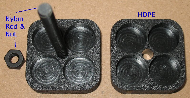 The top piece is drilled smooth so the threaded rod can pass through the top.