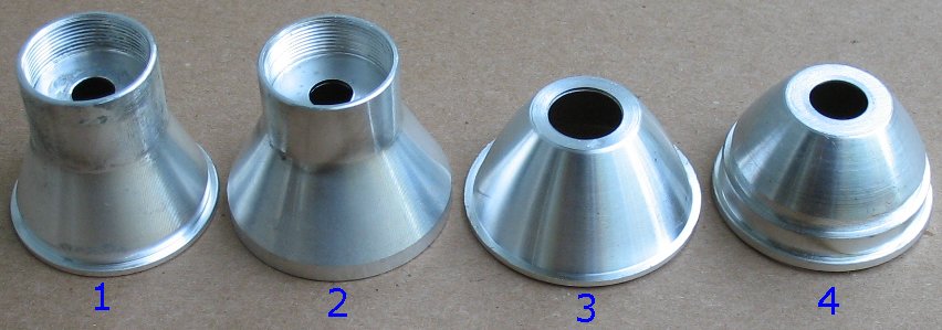The reflectors used in each of the lights. The Hoffman uses reflector #1 The Marwi uses reflector #1 The DX1 uses reflector #2 The DX2 uses reflector #3 Reflector #4 is not used in these beam shots. This is the reflector that came with the DX1 flashlight |