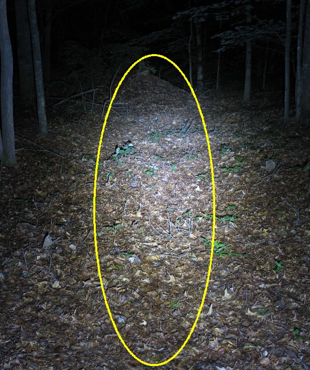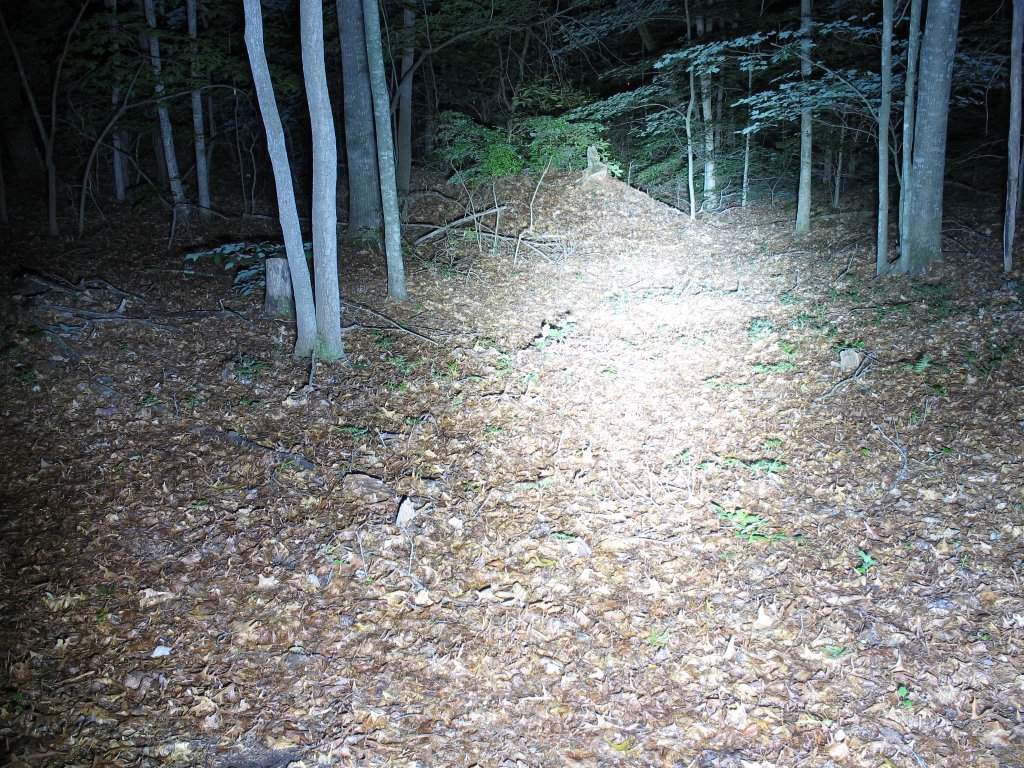 This is my favorite beam shape, the Marwi conversion It lights up the trail just in front of your tire and then throws out a nice fat bright spot down the trail 25+ feet or so. This gives a nice full range of light when on the trail. |