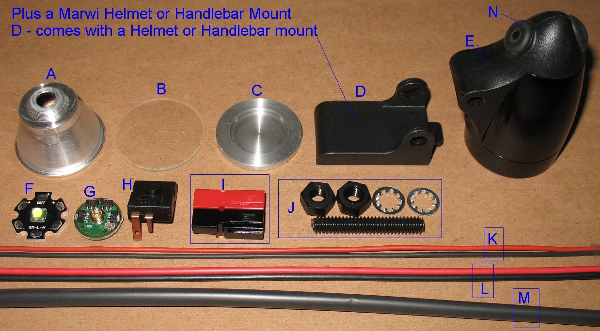 This page shows how I assemble one of the Marwi XML multi mode LED Bike lights. |