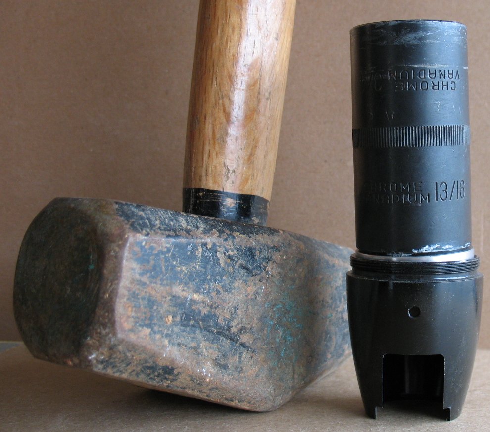 Installing the heat sink Note that I sell the housings with the heat sink already installed to the proper depth But you may prefer to do this yourself to get a different stack height for some other LED or group of parts. Note that I use a press which makes tis a whole lot easier. Tap the heat sink down into the housing using a large diameter socket and a hammer. Look at the big black impact socket I am using It is almost the same diameter as the heat sink Make sure you keep the heat sink level as you tap it down. If one side is farther in than the other, work on the other side to get the heat sink level again. If you start off bad, tap the heat sink out from the other side and start again. Every housing has a tiny bit of difference in the inner diameter. Sometimes the heat sinks go in without much of a fight Sometimes you have to get out a big ass hammer like the one in the picture. If your housing is a bit small, you can sand the outside of the heat sink a tiny bit to get a better fit. Don't make the heat sink diameter too small or you will have to epoxy it in place. I have used this Thermal adhesive and had excellent results Arctic Silver Alumina AATA-5G Thermal Adhesive Don't pound the heat sink in the middle area where the XML will be mounted You may bend the heat sink and then it will not make good thermal contact with the XML When using my machined XML reflector, install the heat sink down as far as it will go The housing walls start to taper and you cannot push the heat sink down any further The pictures above right shows how far down that is. Also see the info above about how much reflector gap you need to have. If you are using some other type of optic/LED combo, you will have to determine how far down to press the heat sink See the section below about the gap I leave between the reflector rim and housing rim |
