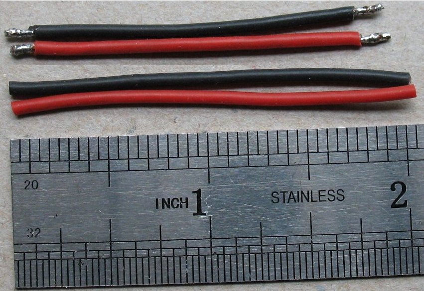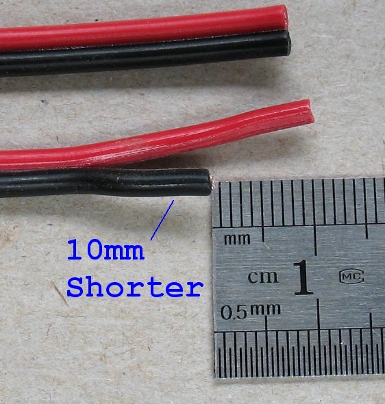 I build the XML Marwi's with 3 foot wires Cut the wire to the length you want Trim the black battery negative wire 10mm shorter You can strip the ends and tin the wire at this point. |