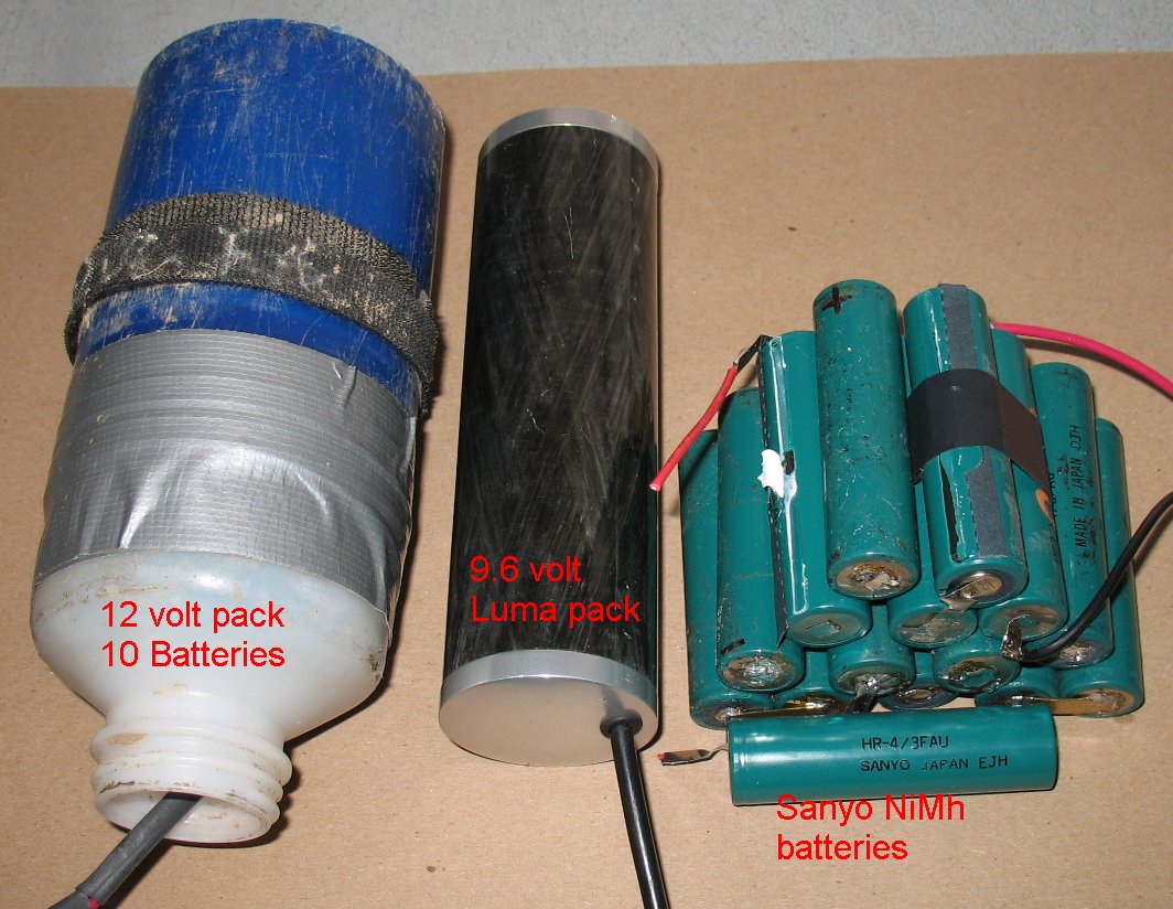 The middle pack is a 9.6v NiMh pack for my Lume HID