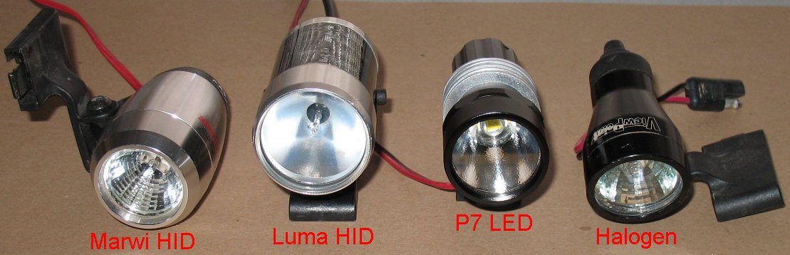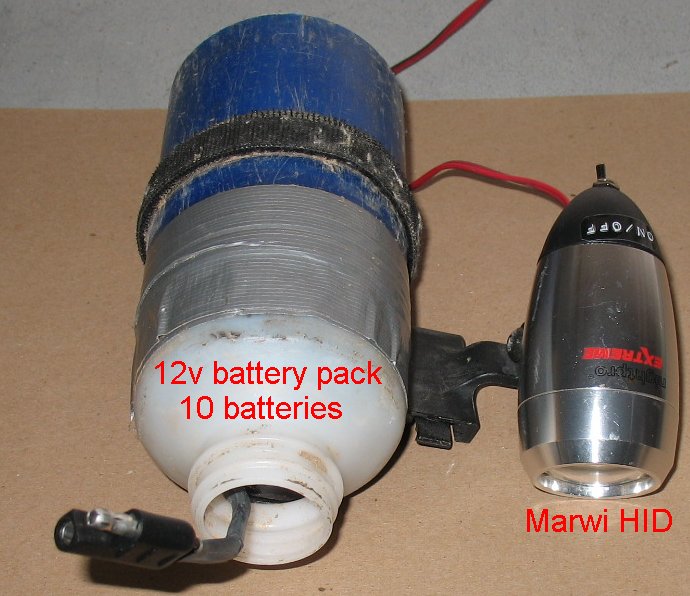 The big homemade pack on the left is the 12volt NiMh battery pack I use for my Marwi handle bar HID.