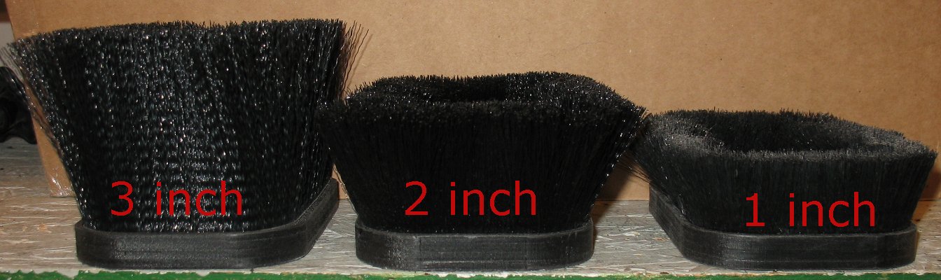 Here's the 3 dust shoes I made in 3 different heights I purchased 3 inch high conveyor brush material and then just trimmed it down to 2 inches and 1 inch high |