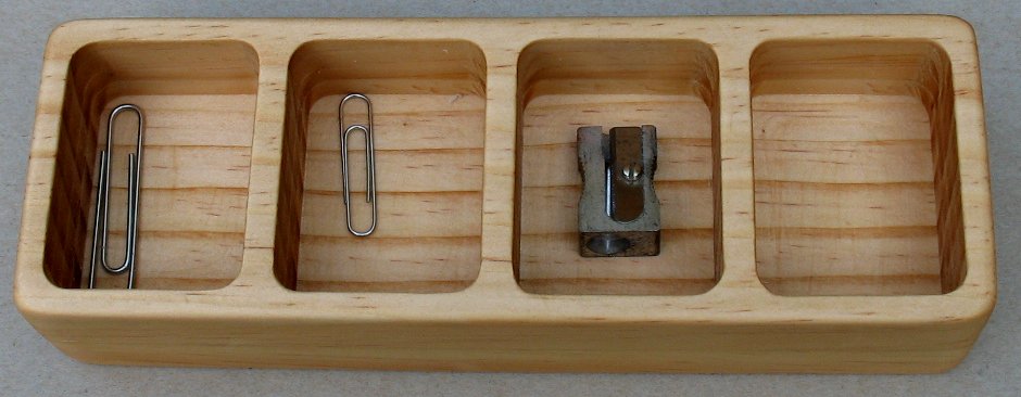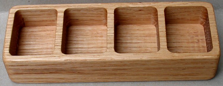 This is a small multi compartment box just cut out of a single block of wood. It's pretty simple, but a cool little box. I could also engrave the front panel with something, that would be a nice touch. | |