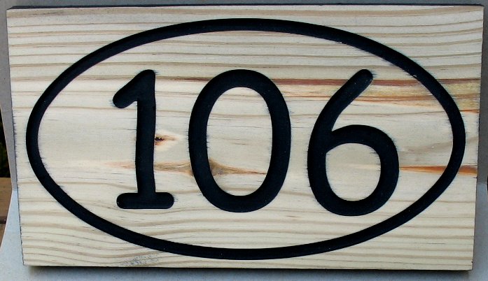 House number sign. Cut about .125 deep, then the surface was painted black. After the paint dried, I ran the sign through a planer to remove the top surface of black paint. |
