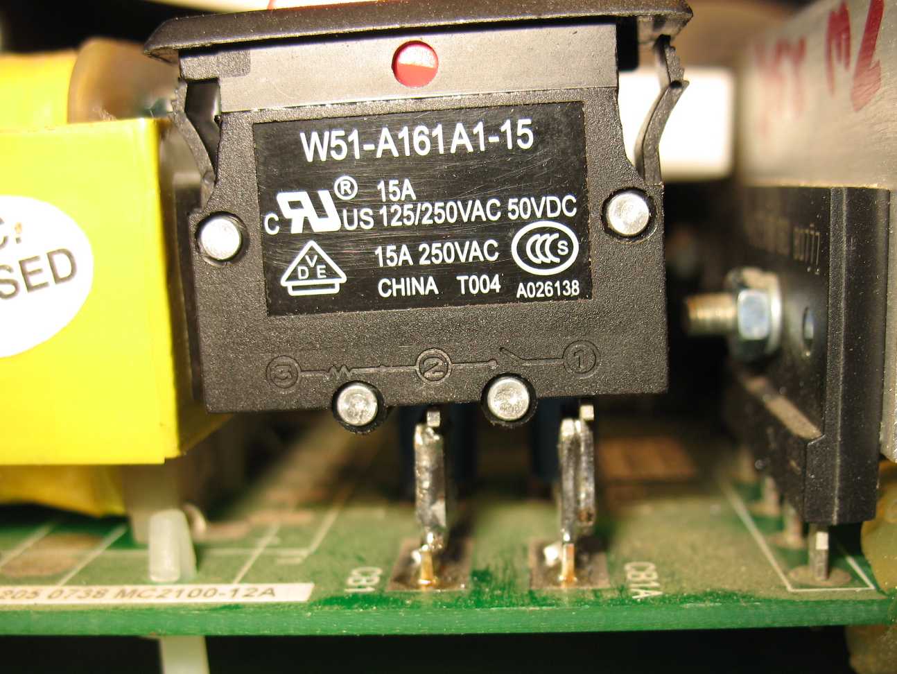 This 15 amp circuit breaker was located on the frame of the treadmill It is used to prevent a current overload condition I soldered the breaker directly to the two lugs on the MC-2100 board I use the rocker switch to turn the MC-2100 On and Off The MC-2100 board will not operate unless the two lugs CB1 and CB1A are connected My motor had two blue wires that went to a heat sensor cutoff switch The heat sensor will open open up and stop the motor if it gets too hot I removed the heat sensor from the motor because it is not going to be used very hard for my application |